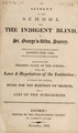 An account of the School for the Indigent Blind, in St. George's-Fields, Surrey. Instituted 1799. Containing the present state of the school, with the laws and regulations ... to which are annexed, rules for the election of objects, and a list of the subscribers.