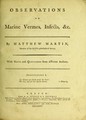 Observations on marine vermes, insects, &c. Fasciculus I / by Matthew Martin ; with notes and quotations from different authors.