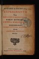 Antonii de Heide Experimenta circa sanguinis missionem, fibras motrices, urtica marinam &c. : Accedunt ejusdem authoris Observationes medicae, nec non, Anatome mytuli.
