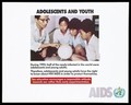 An Asian man points to a globe watched by three youths representing an advertisement for sex education to prevent the spread of HIV/AIDS by the World Health Organization (WHO). Colour lithograph, 1994.