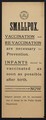 Smallpox : Vaccination and re-vaccination are necessary for prevention : Infants should be vaccinated as soon as possible after birth : consult your doctor now : indigent persons will be vaccinated free of charge by the Public Health Department.
