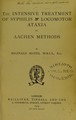 The intensive treatment of syphilis & locomotor ataxia by Aachen methods / by Reginald Hayes.