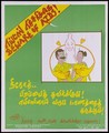 A man and woman being embraced by a personified yellow condom representing an advertisement for the AIDS Awareness Programme by the Pache Trust in Madurai, India. Colour lithograph, ca. 1996.