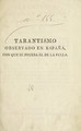Tarantismo observado en España, con que se prueba el de la pulla, dudado de algunos, y tratado de otros de fabuloso. Y memorias para escribir la historia del insecto llamado tarántula, efectos de su veneno en el cuerpo humano, y curacion por la música con el modo de obrar de esta, y su aplicacion como remedio á varias enfermedades / [Francisco Xavier Cid].