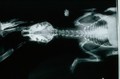 The first DNA fingerprint. The first three lanes contain DNA from a woman, her mother and her father respectively. Lanes 4 - 11 contain DNA from assorted other species including mouse, baboon, lemur, cow, grey seal and tobacco (last lane). The DNA probe used in this experiment detected tandomly repeated short stretches of DNA called minisatellites whose length varies between individuals.