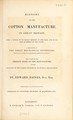 History of the cotton manufacture in Great Britain: with a notice of its early history in the East, and in all the quarters of the globe ... and a view of the present state of the manufacture / By Edward Baines, jun.