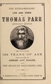 The extraordinary life and times of Thomas Parr, who lived to be 152 years of age : with remarks on disease and health, and the means of prolonging life / [T. Roberts & Co.].