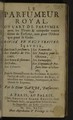 Le parfumeur royal, ou l'art de parfumer avec les fleurs, etc. Composer toutes sortes de parfums, tant pour l'odeur que pour le gout̂ ... / par le Sieur Barbe, parfumeur.