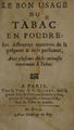 Le bon usage du tabac en poudre. Les diférentes manieres de le préparer et de le parfumer, avec plusieurs choses curieuses concernant le tabac / [Anon].