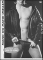 A bare-chested man wearing a leather jacket with a pierced nipple pulling down his underpants; a safe sex and AIDS prevention advertisement for gay and bisexual men by the Landsforeningen for Bøsser og Lesbiske. Lithograph by Robin Skjoldborg, ca. 1995.
