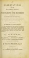 Observations on the different modes of puncturing the bladder in cases of retention of urine : pointing out the advantages and disadvantages of each mode of operating ... : containing an answer to the following questions: "In cases of retention of urine ... : to which is added an appendix containing several practical observations .. / by Walter Weldon.