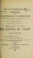 Contribution à l'étude des kystes du vagin : leur pathogénie ... / par Gabriel Feurtet.
