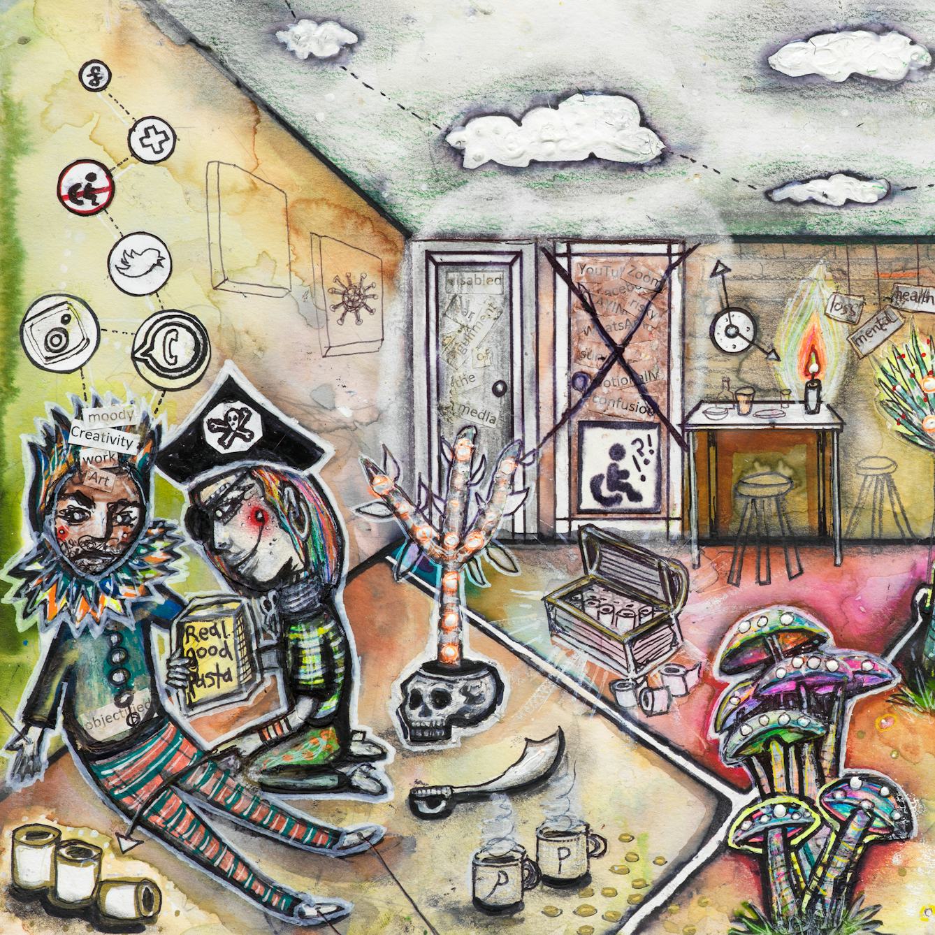 Carrie is a queer and neurodivergent artist from London. Her art practice focuses on women’s health, late diagnosis and the mind-body connection, which she communicates through colour, characters and symbolism in detailed, linked artworks. Recent creative projects include a neuroart exhibition in collaboration with neuroscientists at the Kings College ADHD Research Lab. Outside of making art, Carrie is a a mental health support worker and art psychotherapist at Mind, the mental health charity, and volunteers as a psychedelic first aider with the charity PsyCare.