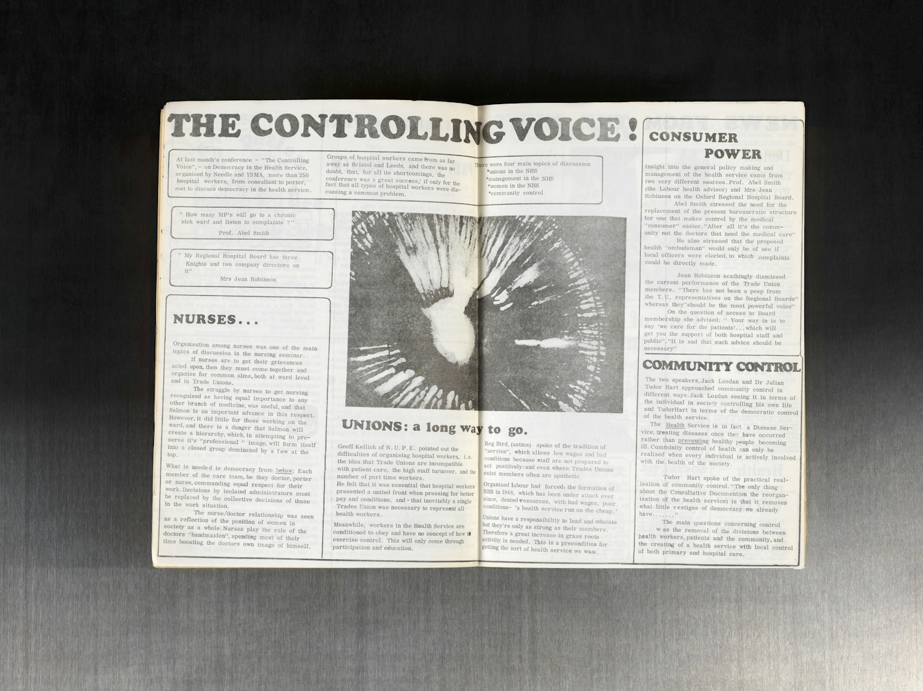 While at this time, patient rights activism focused more on the rights of the patient as a consumer, Needle had a strong emphasis on the need to engage patients, health workers and the community in decision-making. For Needle, the exclusion of these groups, and the need to resist their marginalisation, were a connected struggle. Needle explored this at ‘The Controlling Voice’, a conference held at Middlesex Hospital Medical School on 5 and 6 February 1972. Attended by 250 hospital workers across Bristol, London and Leeds, the conference explored democracy in healthcare and highlighted the need to centre patient and public voices. Vocal participants expressed anger at the absence of community control, with a participant pointing out that her “regional hospital board has three knights and two company directors on it”, while another participant questioned “how many MPs will go to a chronic sick ward and listen to complaints?” For Needle, health decisions had to be shaped by the people they directly impact – their needs and perspectives had to be prioritised for better health.