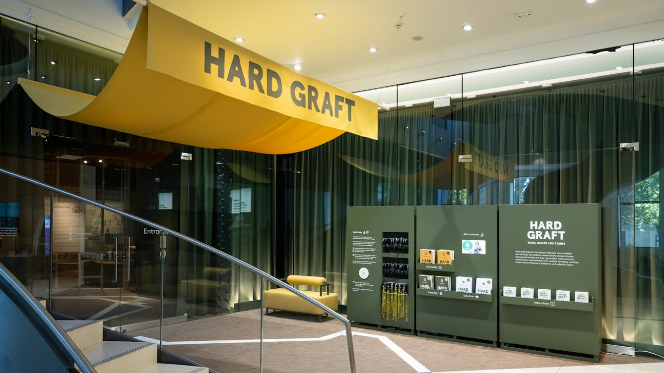 There is a number and a QR code next to each stop in the exhibition. You can scan the QR codes with your phone to get the digital guides.