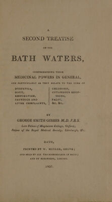 A second treatise on the Bath waters, comprehending their medicinal powers. In general ... / by George Smith Gibbes.