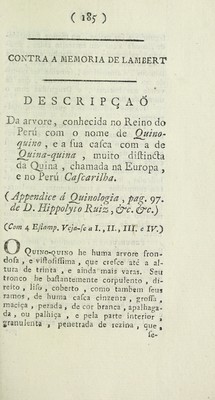 Quinografia portugueza ou collecção de varias memorias sobre vinte e duas especies de quinas, tendentes ao seu descobrimento nos vastos dominios do Brasil, copiada de varios authores modernos : enriquecida com cinco estampas de quinas verdadeiras, quatro de falsas, e cinco de balsameiras ... e colligida de ordem de sua alteza real o Principe do Brasil / Por Fr. José Mariano Velloso.