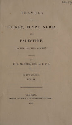 Travels in Turkey, Egypt, Nubia and Palestine, in 1824, 1825, 1826, and 1827 / [Richard Robert Madden].
