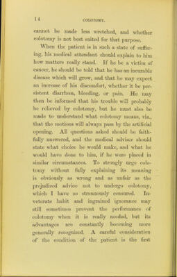 Credit: Colotomy, inguinal, lumbar, and transverse, for cancer or stricture with ulceration of the large intestine / by Herbert W. Allingham. Source: Wellcome Collection.