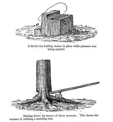 M0015340: Illustration of a device used for holding stones while pressure is being applied in the manufacture of implements