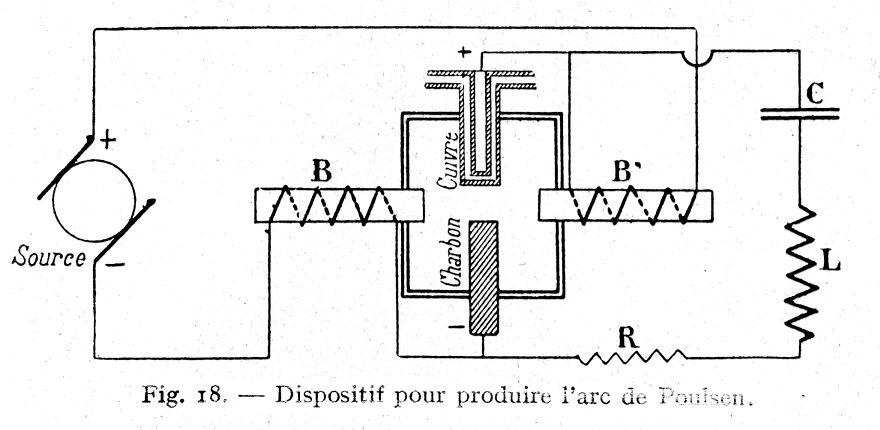 Credit: M0014864: Circuit showing the use of Poulsen's arc to give sustained oscillations, 1925. Source: Wellcome Collection.