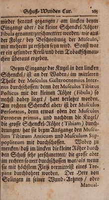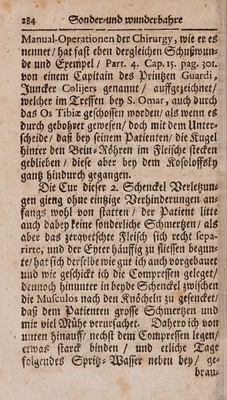 Credit: Funfftzig sonder- und wunderbahre Schuss-Wunden Curen, in Pommern vor denen Belägerungen, Wolgast, Ancklam, Demmin, Stettin, Greiffswalde, Strahlsund, und Einnehmung der Insul Rügen geschehen, und wie solche ... tractiret, und glücklich curiret worden. Vor diesem Anno 1687 nur die Helffte beschrieben, itzo aber ... vollends heraus gegdben. Neben noch 2 ... Exempeln und deren Curen zu Halberstadt und Bresslau geschehen / [Matthias Gottfried Purmann]. Source: Wellcome Collection.