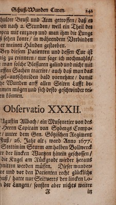 Credit: Funfftzig sonder- und wunderbahre Schuss-Wunden Curen, in Pommern vor denen Belägerungen, Wolgast, Ancklam, Demmin, Stettin, Greiffswalde, Strahlsund, und Einnehmung der Insul Rügen geschehen, und wie solche ... tractiret, und glücklich curiret worden. Vor diesem Anno 1687 nur die Helffte beschrieben, itzo aber ... vollends heraus gegdben. Neben noch 2 ... Exempeln und deren Curen zu Halberstadt und Bresslau geschehen / [Matthias Gottfried Purmann]. Source: Wellcome Collection.