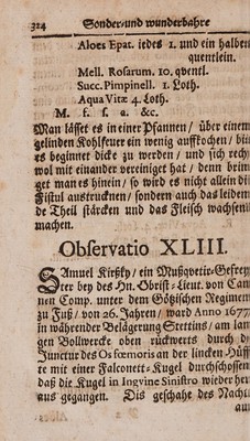 Credit: Funfftzig sonder- und wunderbahre Schuss-Wunden Curen, in Pommern vor denen Belägerungen, Wolgast, Ancklam, Demmin, Stettin, Greiffswalde, Strahlsund, und Einnehmung der Insul Rügen geschehen, und wie solche ... tractiret, und glücklich curiret worden. Vor diesem Anno 1687 nur die Helffte beschrieben, itzo aber ... vollends heraus gegdben. Neben noch 2 ... Exempeln und deren Curen zu Halberstadt und Bresslau geschehen / [Matthias Gottfried Purmann]. Source: Wellcome Collection.