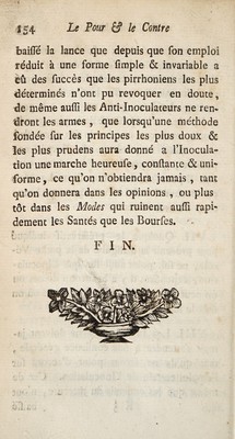 Credit: Le pour et le contre de l'inoculation ou dissertation sur les opinions des scavants et du peule, sur la nature et les effets de ce remede / [D.T. de Bienville]. Source: Wellcome Collection.
