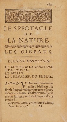 Le spectacle de la nature, ou, entretiens sur les particularités de l'histoire naturelle, qui ont paru les plus propres à rendre les jeunes-gens curieux, et à leur former l'esprit / [Anon].
