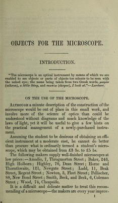 Objects for the microscope : being a popular description of the most instructive and beautiful subjects for exhibition ... / [L. Lane Clarke].