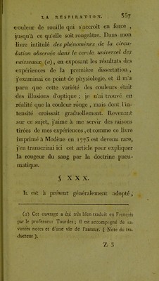 Mémoires sur la respiration / par Lazare Spallanzani ; traduits en français, d'après son manuscrit inédit, par Jean Senebier.