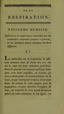 Credit: Mémoires sur la respiration / par Lazare Spallanzani ; traduits en français, d'après son manuscrit inédit, par Jean Senebier. Source: Wellcome Collection.