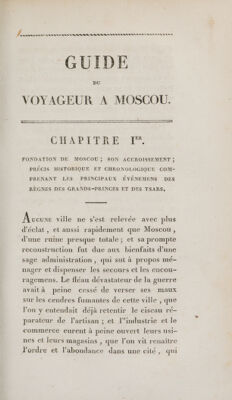 Guide du voyageur à Moscou ... précédé d'un précis historique ... des règnes des Grands-Princes et Tsars de l'ancienne principauté de Moscou; et suivi d'un itinéraire des principales routes de la Russie / [G Lecointe de Laveau].