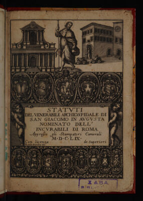 Credit: Statuti del venerabile Archiospidale di San Giacomo in Augusta, nominato dell'incurabili di Roma. Source: Wellcome Collection.