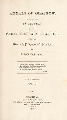 Annals of Glasgow, comprising an account of the public buildings, charities, and the rise and progress of the city / By James Cleland.