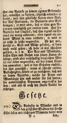 Unterricht von dem Collegium der Aerzte in Münster wie der Unterthan bey allerhand ihm zustossenden Krankheiten die sichersten Wege und die besten Mittel treffen kann seine verlorne Gesundheit wieder zu erhalten nebst den münsterschen Medicinalgesetzen. Entworffen / durch C.L. Hoffmann.