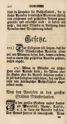 Unterricht von dem Collegium der Aerzte in Münster wie der Unterthan bey allerhand ihm zustossenden Krankheiten die sichersten Wege und die besten Mittel treffen kann seine verlorne Gesundheit wieder zu erhalten nebst den münsterschen Medicinalgesetzen. Entworffen / durch C.L. Hoffmann.