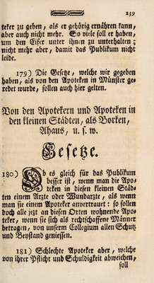 Unterricht von dem Collegium der Aerzte in Münster wie der Unterthan bey allerhand ihm zustossenden Krankheiten die sichersten Wege und die besten Mittel treffen kann seine verlorne Gesundheit wieder zu erhalten nebst den münsterschen Medicinalgesetzen. Entworffen / durch C.L. Hoffmann.