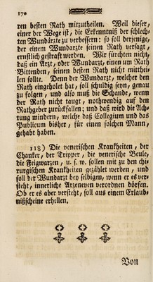 Credit: Unterricht von dem Collegium der Aerzte in Münster wie der Unterthan bey allerhand ihm zustossenden Krankheiten die sichersten Wege und die besten Mittel treffen kann seine verlorne Gesundheit wieder zu erhalten nebst den münsterschen Medicinalgesetzen. Entworffen / durch C.L. Hoffmann. Source: Wellcome Collection.