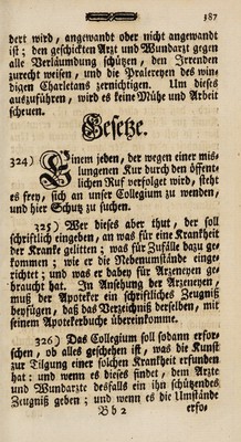 Credit: Unterricht von dem Collegium der Aerzte in Münster wie der Unterthan bey allerhand ihm zustossenden Krankheiten die sichersten Wege und die besten Mittel treffen kann seine verlorne Gesundheit wieder zu erhalten nebst den münsterschen Medicinalgesetzen. Entworffen / durch C.L. Hoffmann. Source: Wellcome Collection.