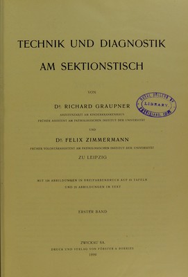 Technik und Diagnostik am Sektionstisch / von Richard Graupner und Felix Zimmermann.