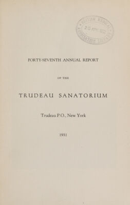 Annual report of the Trudeau Sanatorium : 47th (1931)