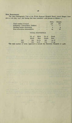 Credit: [Report 1951] / Medical Officer of Health, Caernarvonshire Combined Sanitary Districts (Bangor City, Conway Borough, Bethesda U.D.C., Betws y Coed U.D.C., Llandudno U.D.C., Llanfairfechan U.D.C., Penmaenmawr U.D.C., Nant Conway R.D.C., Ogwen R.D.C., Caernarvon Borough, Pwllheli Borough, Criccieth U.D.C., Portmadoc U.D.C., Gwyrfai R.D.C., Lleyn R.D.C.). Source: Wellcome Collection.