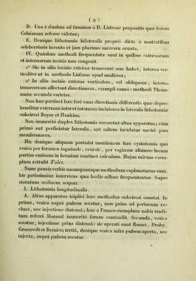 Credit: Varias circa lithotomiam methodos conferre : theses quas, Deo favente, in saluberrimâ Facultate medicâ Parisiensi, praesentibus competitionis judicibus, publicis competitorum disputationibus subjiciet et dilucidare conabitur, die [...] martii mensis, anno 1827 / V. Corby. Source: Wellcome Collection.