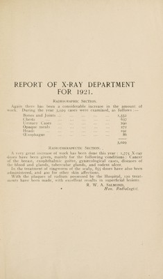 Credit: Reports of the Surgical Registrar, Resident Medical Officer, Obstetrical Registrar, Pathologist and Radiographer : 1921 / North London or University College Hospital. Source: Wellcome Collection.