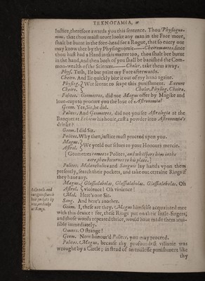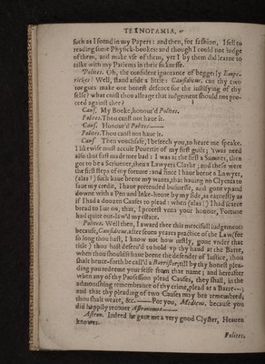 ![V v TEXNOrAMIA, it mere account of than your ielfe : and therefore 1 will not fay, vtameris ama.loue her,that flic may loue youibmJVttMtima- risama. Lone becaufe you arefirft iou’d; nay, Scis a iufl gra¬ titude, which alio is a !oue,and fo you fiiall double it. Briefly., ifthere be any point, Geometres, which you Hand vpon,know you rcmainc (dill atOds; but if you embiacethe loue of A. ritkmetica, you1] be at a perfect vnitie. Geom.\\7c\\.Polnes,G(omttres (hall bee Rul’d by you this once; come, Wench, fure I biuft loue elite, 1 ctien long to take thine Altitude. •sfrith. And I trufi we two (ball be a 1 waits Eucn. Politest Poetn. you hail? partly yeelded tomee in priuatc a eonfent to the embracingof Htfieria's loue,which if you fhall publikely confefle,and fo confirme, you fliall not only get a Wife,but a fricnd;and what honour iV/rc/may doc to Poet a, loue and opportunitie fliall vnitedly performc. Oeccncm.l; eonfent,wild- head, eonfent: fliee’l make thee more flay’d. - Poetn. I yeeld : Hifiorta, my loue fliall more infeparably fellow thee,thati the Hexameterthc Pentameter; or the Ad.o- tticke, the Satphicke- w Hifiorta. Why, thus did Xenophonand his Loueioyne to¬ gether. 27 , - * Voht.Ks for you j G rammatic m, 1 vndcrfhnd of your great affedionto Rhetorica\ who though fhee loues Logictur yet becaufe hcc I ones not her mutually, (which muft b£ required betweene fiich paircs) and that i\hetorica had {hewed ferae kind q{ afre$ion,toward Grammatiefu^ with my beft defires I will toyne you two; and the rather to induce a willingnefTe in you,Rhetorical would haue ybu not forget,how Gramma- tiem and you haue bcene brought vp from Chiidreritogether, and Schoole-fellowcs, and take this for a rule : Change not an old friend.Yeeld Rheterica}y?cl<&^let Phjfica intreat thee* i\hcter. VVhy then, Grammaticus, at this double requeft, without any Circumlocutionsor Figures, I plainely offer vn- ■ to tbcc my loue* > G ram Mi hy then,dearcfir RhetoricayQy(£Kofiros vidifiijlcn-](https://iiif.wellcomecollection.org/image/b30333258_0120.jp2/full/800%2C/0/default.jpg)