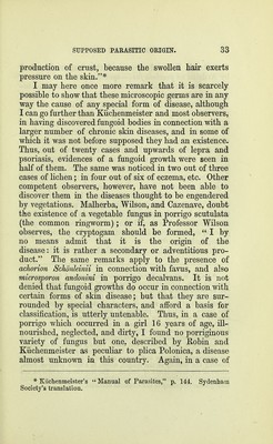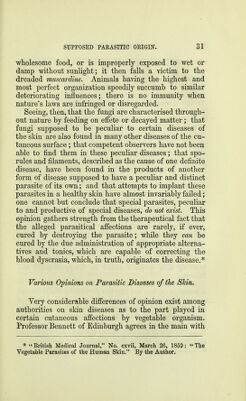 Skin diseases, an inquiry into their parasitic origin, and connection with eye affections : also the fungoid or germ theory of cholera / by Jabez Hogg.