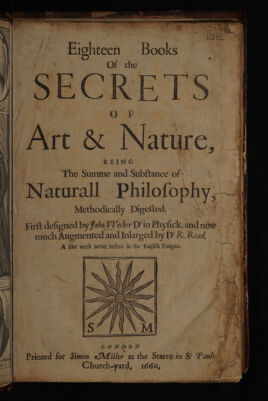 Credit: Eighteen books of the secrets of art and nature, being the summe and substance of naturall philosophy, methodically digested / First designed by John Wecker and now much augmented and inlarged by Dr. R. Read. [Translated by William Rowland] ; a like work never before in the English tongue. Source: Wellcome Collection.