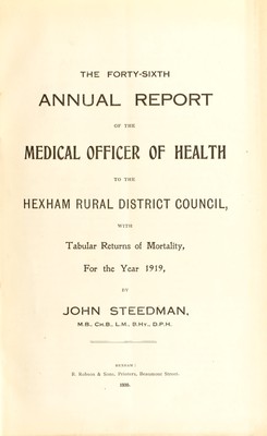 Credit: [Report 1919] / Medical Officer of Health, Hexham R.D.C. Source: Wellcome Collection.